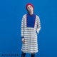 MOVEUP幻走2015女装春款清新文艺条纹圆领撞色长袖棉麻连衣裙
