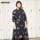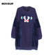 MOVEUP幻走女装衬衣秋冬季趣味绣花翻领宽松中长款纯棉长袖衬衫女