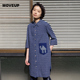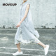 MOVEUP幻走2016夏翻领印花宽松条纹长裙纯棉假两件无袖连衣裙长款