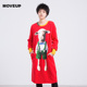 MOVEUP幻走a字裙2016女装春秋装印花纯棉娃娃领中长款红色连衣裙