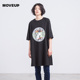 MOVEUP幻走2017女装夏季新品 圆领趣味印花宽松中长款T恤女短袖