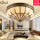 欧式全铜卧室吸顶灯具美式复古风格客厅圆形LED铜灯新中式灯饰