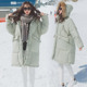 过膝长款连帽棉衣女冬装韩版宽松彩色条纹织带加厚面包服羽绒棉服