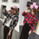 格子休闲长袖衬衫2017春季新款韩版宽松女生打底潮流衬衣外套大码