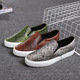卓不凡春季新款低帮男鞋韩版潮蛇纹图案休闲板鞋平底套脚懒人鞋男
