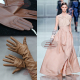 高级定做粉色露指长皮手套羊皮长手套可爱蝴蝶结真皮半指手套优雅