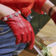 长款皮手套 女 冬加厚羊皮长手套 长皮手套女士红色过肘全指修手