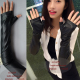 真皮手套半指手套女 露指羊皮长款手臂套冬季保暖过肘加大码加厚
