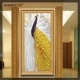 新款玄关装饰画竖版单幅过道走廊挂画美式客厅壁画墙面白金孔雀