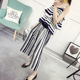 2017夏装新款女装韩版吊带竖条纹上衣+阔腿长裤子两件套套装潮女