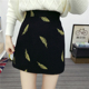 胖mm毛呢短裙秋冬季大码女装一步包臀裙刺绣高腰半身裙显瘦a字裙