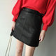 大码女装春秋款pu半身裙加肥加大胖mm高腰显瘦百搭A字裙短裙200斤