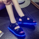 夏季松糕厚底魔术贴发光凉鞋女usb充电亮灯鞋led七彩夜光鞋荧光鞋