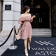 董小姐 高端定制气质名媛V领中长款喇叭袖星星雪纺连衣裙仙女裙女