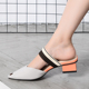 欧美2017夏季新款包头粗跟尖头小鱼嘴穆勒半拖鞋女拼色中跟凉拖鞋