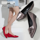 2017春季欧美真皮尖头单鞋浅口平底中跟内增高休闲鞋蝴蝶结女鞋子