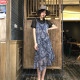 韩国代购2017夏季新款复古印花网纱显瘦假两件荷叶边吊带连衣裙女