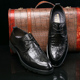 万登堡男鞋秋冬季男士皮鞋厚底商务休闲鞋英伦真皮潮流鳄鱼纹鞋子