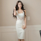 2017夏装新款韩版女装无袖蕾丝拼接性感修身包臀气质优雅连衣裙潮