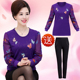 妈妈装秋冬装修身长袖T恤保暖上衣中年女装40-50岁妇女加绒打底衫