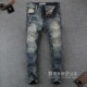 2017意大利贝克汉姆 潮做旧个性男复古修身小脚破洞牛仔裤 春秋潮