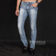 2017欧美风复古做旧春秋破洞水洗个性小直筒修身浅色小脚牛仔裤男