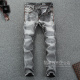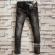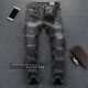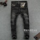 2017意大利欧美风黑灰弹力四季破洞复古修身小脚牛仔裤男士 潮