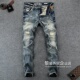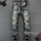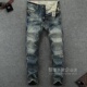 2017意大利欧美风春秋款复古做旧个性破洞男长裤修身小直筒牛仔裤