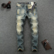 2017怀旧欧美风新款春秋复古做旧磨破男修身弹力小脚牛仔长裤潮