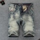 2017新款欧美风 潮流修身复古做旧夏破洞男中裤牛仔短裤男薄5分五