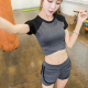 秋季健身服运动套装女大码紧身短袖T恤女士休闲上衣假两件短裤夏