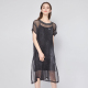 自然码原创设计短袖雪纺连衣裙宽松中长款2017新款拼接纱网a字裙