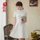 逸红颜 白玫瑰 民族风女装复古蕾丝白色短袖连衣裙51FQ01S2