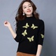 蝴蝶刺绣女士毛衣秋冬季新款2016短款套头小立领羊毛衫针织打底衫