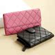 欧美大牌菱格车缝线简约牛皮真皮女款长款招财钱包百搭洋气款
