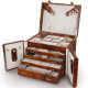 蔓陀妮 公主真皮首饰盒珠宝盒 大容量带锁大珠宝箱 首饰箱木质