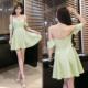 夏装新款2017夜店韩版名媛吊带露肩交叉漏背性感高腰大摆连衣裙