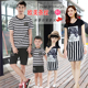 亲子装夏装母女装2017新款潮夏季母子条纹家庭连衣裙父子全家套装