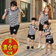 亲子装夏装2017新款条纹套装母女装母子家庭装一家三口全家装短袖