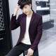 春秋新款薄款印花小西装男便西服中山装男青年韩版修身休闲外套单