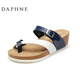 Daphne/达芙妮正品夏季女凉鞋中坡跟夹趾撞色休闲凉拖鞋女清仓