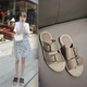2017春夏季新款拼色高跟松糕鞋女厚底平底鞋时尚沙滩鞋拖鞋一字拖