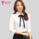 大码打底上衣蝴蝶结女装雪纺职业装秋冬白色修身衬衣长袖衬衫女寸