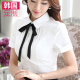 夏新款白色短袖衬衫女修身ol蝴蝶结工作服衬衣时尚职业装上衣