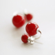 正品韩国925纯银红珊瑚贝珠耳钉女耳环简约气质纯银耳饰防过敏