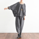 17春季新款文艺旅行女装二件套装宽松大码亚麻上衣工装式休闲垮裤