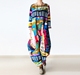 17春夏季新品款原创设计女装宽松大码雪纺棉印花民族连身长裙袍子