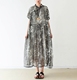 17春夏季新款宽松大码复古盘扣文艺中式斜襟轻薄印花连衣长裙袍子