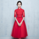 新娘敬酒服2017新款春夏季时尚酒红色短款中式立领结婚晚礼服裙女