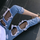 Ycms/伊彩漫莎新款女破洞牛仔裤九分性感渔网镂空牛仔裤韩版宽松